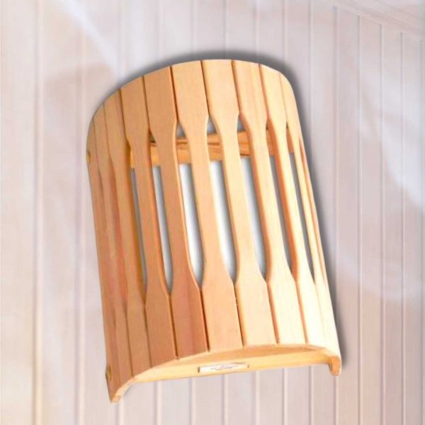 Декоративный абажур из липы, для бани и сауны , предохраняет осветительный прибор от попадания на него брызг воды при применении веника, а еще приглушает свет, делая его больше интимным и комфортным.